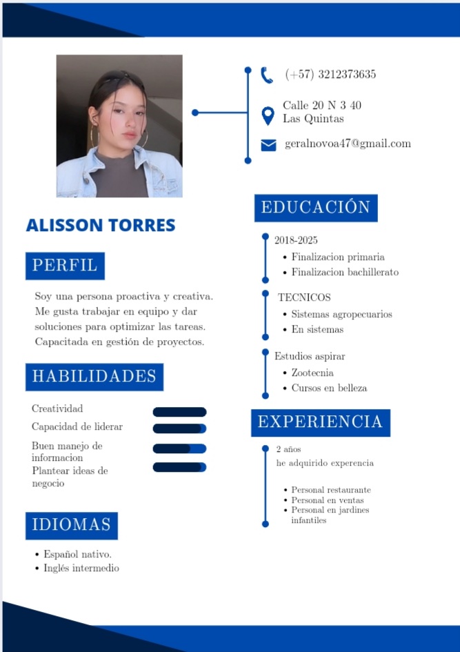 En mi hoja de vida quiero dar a mostrar un poco de la persona que soy y cuales han sido mis conocimientos y logros sin embargo tengo en mis planes tener muchos mas logros